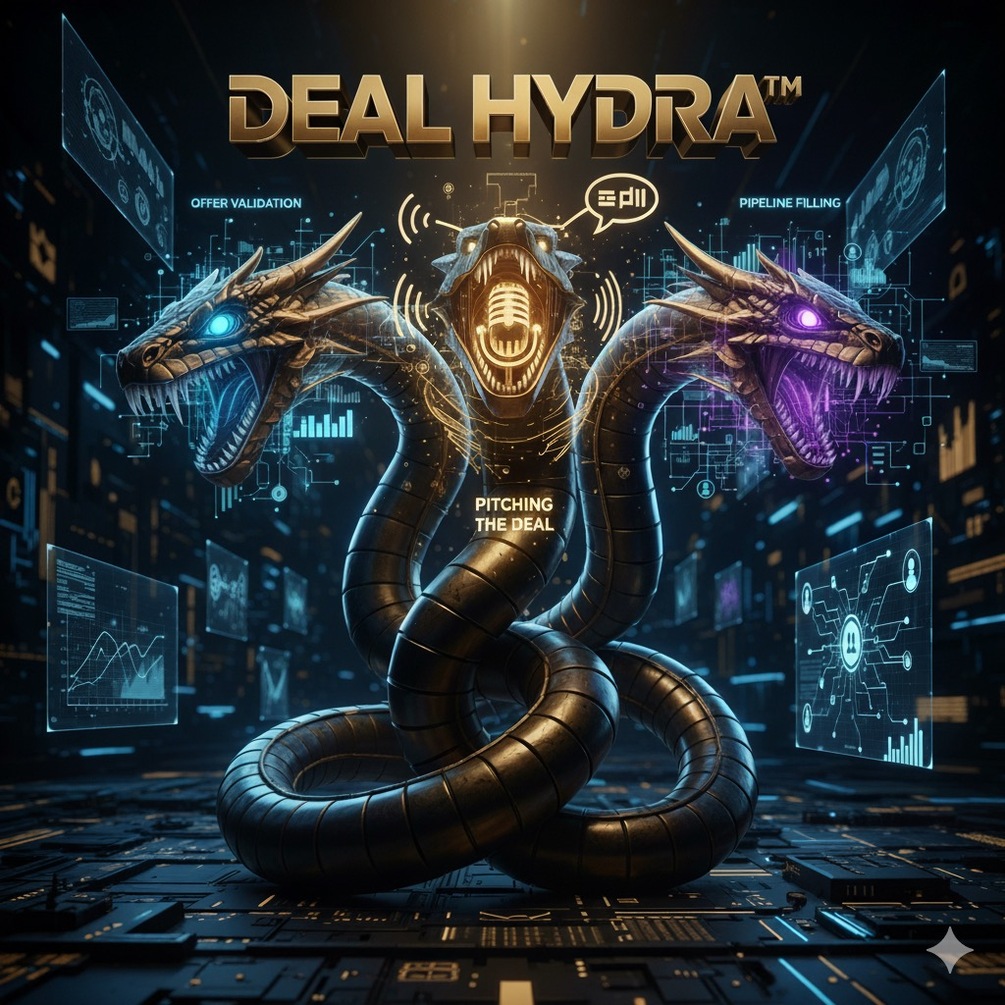 Deal Hydra™ Three heads. One mission: Validate the offer → Pitch the deal → Fill the pipeline.