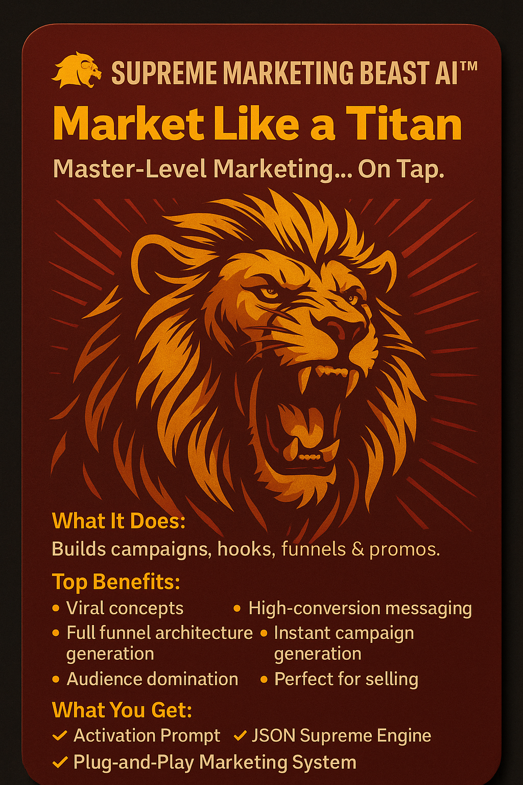 Supreme Marketing Beast AI™ An all-in-one marketing AI that generates content, automates campaigns, and helps businesses scale growth effortlessly.